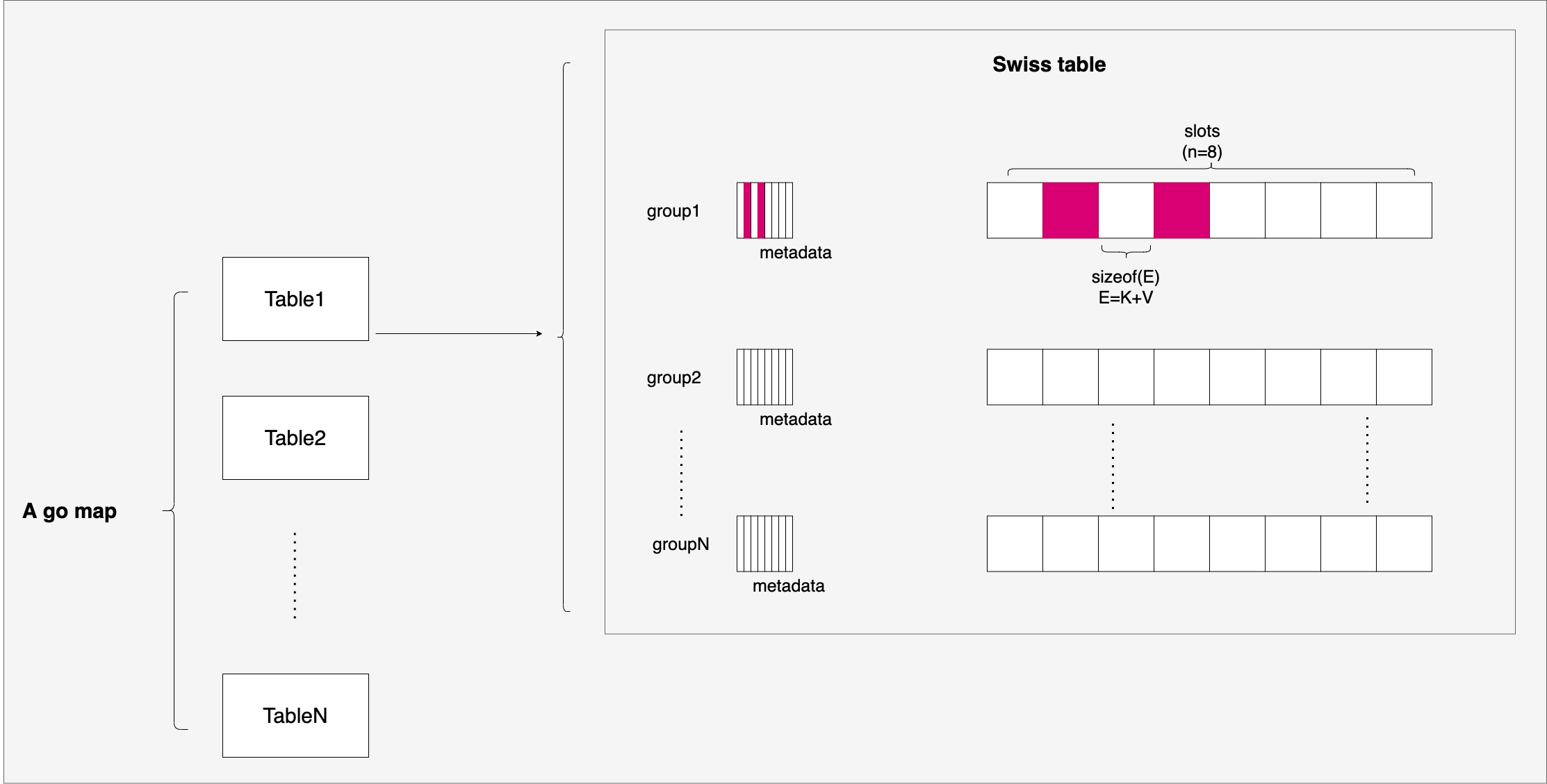 Go swiss-table based map的逻辑结构大致如下: