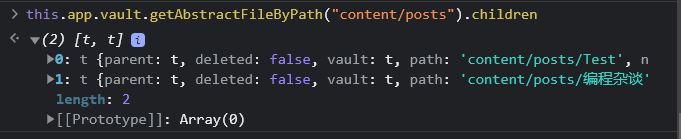 this.app.vault.getAbstractFileByPath("content/posts").children